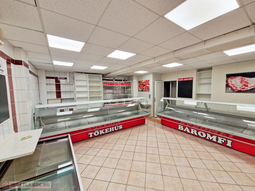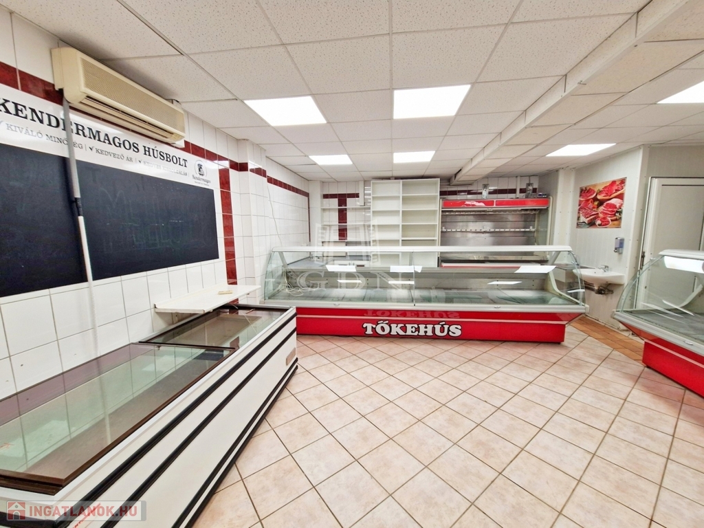 A bérlemény gépesítéséhez egy 9 és egy 15 nm -es hőtőkamra is tartozik. Valamint a hirdetés képein is látható fali húsfogas, és 2 db csemegepult, illetve fagyasztóládák.
