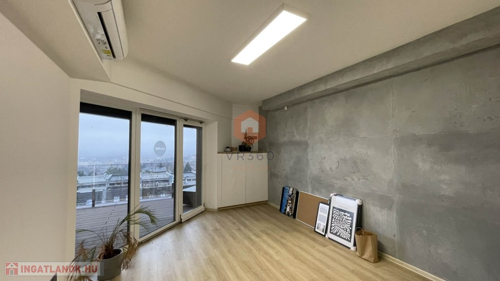 A légkondicionált iroda helyiség akár lakásnak is kiadható, rendkívül tágas és napfényes, déli fekvésének köszönhetően.