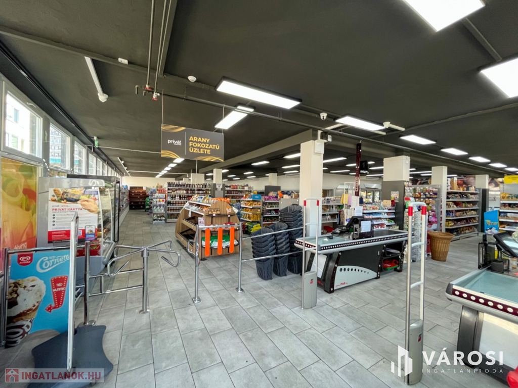Az ingatlan a város legforgalmasabb részén található, 50 éven keresztül élelmiszer profillal üzemelt, de bármely más kereskedelmi vagy szolgáltató tevékenység folytatására alkalmas lehet.