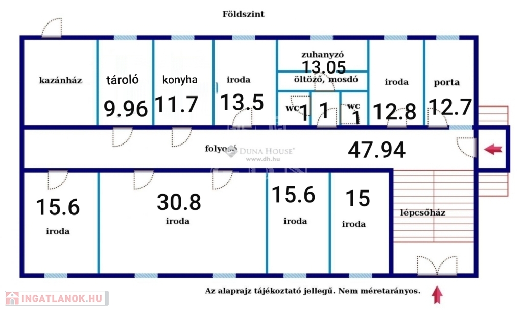 - folyosón közös használatú női-férfi mosdó