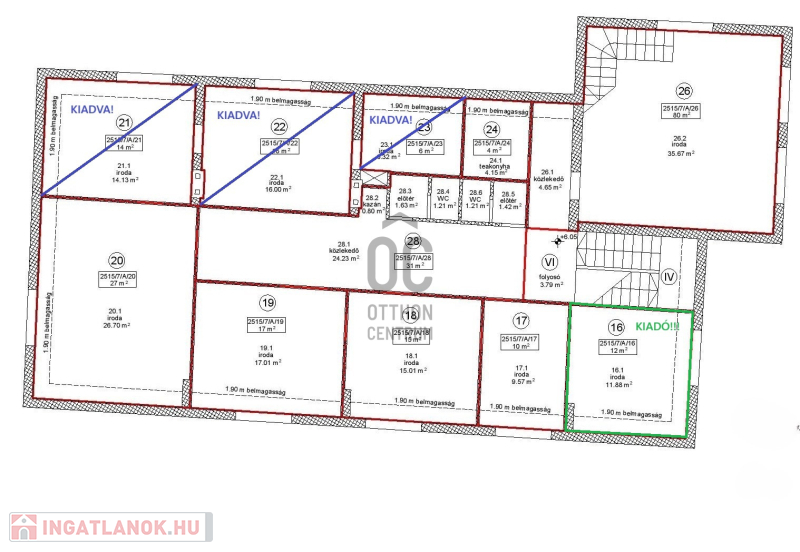 - A hirdetésben található iroda 12 m2 alapterületű, a szintrajzon a 16. számú.