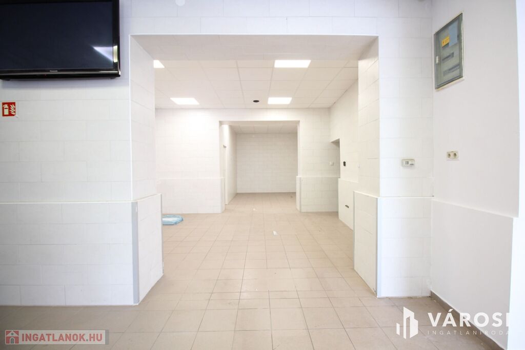 Szentes belvárosában kínálom kiadásra ezt a 160 m2-es üzlethelyiséget, ami kiváló állapotú, felújított. Az alaprajzon 213 m2 szerepel, ebből már ki lett adva 60 m2, ami gipszkartonnal elválasztásra kerül. A szolgáltatók mérőórái külön mérik a fogyasztást az adott üzletre. A nagyobb üzletnek 2 bajárata van. A biztonságról riasztó és kamera gondoskodik. A burkolat hidegburkolatú.