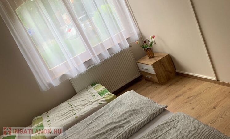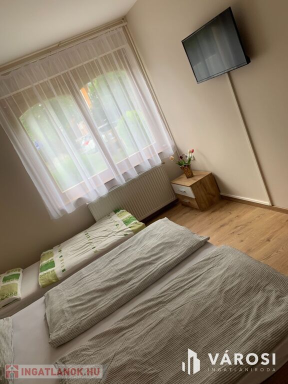 Hajdúszoboszló frekventált, zöldövezeti részében, apartmanház kiadó 3+2 szobával, elsősorban hosszabb távra. A családi apartman főépülete 2021-ben teljes felújításon esett át: új nyílászárók, 200X180-as ágyak kerültek elhelyezésre új matraccal, valamint új laminált padló és új szaniterek kerültek beépítésre a 3 különálló szobába. Mindegyik szobához önálló fürdőszoba, valamint egy közös nappali teljesen felszerelt konyhával tartozik. Az apartman mindegyik szobája légkondicionált, wifivel, sík képernyős TV-vel és hűtőszekrénnyel ellátott. A szobák kellemes méretűek, 2+1 fő elhelyezése lehetséges, a szobák mérete 18 m2. Az apartman földszinti, és akadálymentesített.
