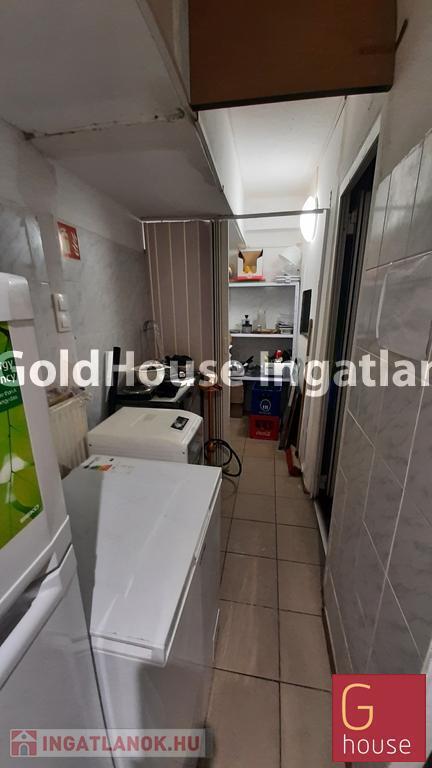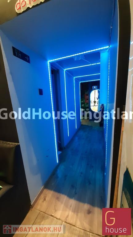 A földszinten jelenleg bár kialakítású, az emeleten mosdók, vendégtér és egy kisebb konyha található. Igény esetén a gipszkarton fal elbontásával nagyobb konyhaterület is kialakítható. A konyhai elszívó a tető fölé kivezetésre került. Fűtés: cirkó. Közös ktsg: 36 e Ft/hó.