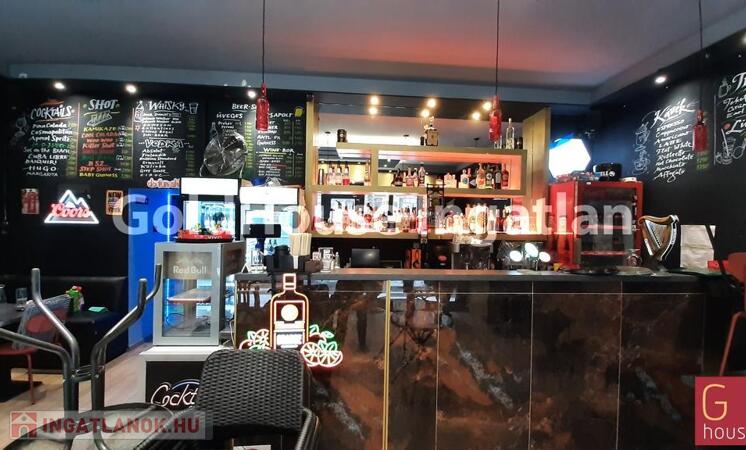 Hajnalig nyitva tartható, kétszintes, engedélyekkel rendelkező bár-pub-étterem teljes berendezéssel, felszereléssel.
