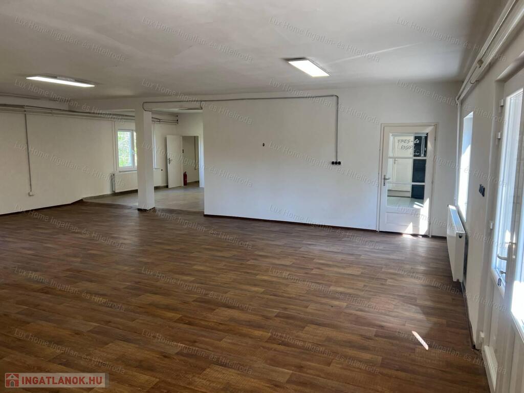 Kiadó egy 186 m²-es, iroda és üzlethelyiség céljára alkalmas épületrész az 1-es főút és az elkerülő út találkozásánál, zárt udvaron belül, jól látható, forgalmas helyen.