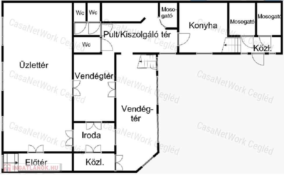 Az ingatlan össz. területe 170 nm, melyben átalakítás után továbbra is üzleti célú tevékenység folytatható.