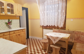 A házban 3 szoba, nagy konyha ,fürdő-WC egyben (zuhanyzó, kád és a gázkazán), meleg víz ellátás villanybojlerből ami kb.5 éves, kamra (ahol a padlásfeljáró is van), előszoba, nagy terasz van kialakítva.