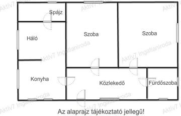 -a nagyobb tanya ingatlan, kb 62 nm-es, 2 szoba, háló, előszoba, konyha, és fürdő, spájz kapott helyet,