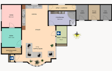 - Szobák száma: 2 háló, 1 gardrób + 1 amerikai konyhás nappali