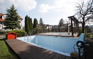A házhoz 120 nm terasz tartozik és egy 6 x 3 m-es kültéri medence.