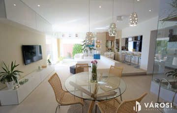 2018-ban, magas minőségben épült ez a különlegesen megtervezett, igényesen kialakított, három szintes 237 nm-es ház, mely egy 612 nm-es telken helyezkedik el. Minden helyiségben elegáns, modern stílus dominál. Ízléses kialakítás és berendezés, magas minőségű beépített anyagok, átgondolt helykihasználás jellemzi.