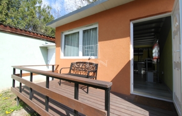 Vendégház 2: könnyűszerkezetes (fém vázszerkezet, kőzetgyapot szigetelés), kívülről is hőszigetelt, újszerű állapotú, 35 m2 lakótér + 7 m2 terasz, klímával fűthető/hűthető