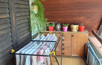 A belső, udvari lakrész 35 m2 lakóterületű, a földszinten található a konyha, a tetőtérben, nappali, fürdőszoba és hálószoba helyiségek lettek kialakítva.