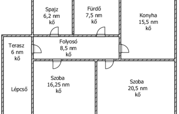Az ingatlanban egy konyha, 2 szoba, fürdőszoba, kamra, és közlekedő található. A ház alápincézett, az ablakok redőnyözöttek.