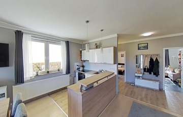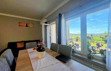 A szuterénszintről egy lépcsőn tudunk feljutni a lakószintre, melynek természetesen külön bejárata is van. Ezen a szinten a szülői háló, gyerekszoba, dolgozószoba és a nagy, amerikai konyhás, nappali-étkező osztozik. A szülői hálóból és a nappaliból is csodás panoráma nyílik a Bükk hegyeire, erdeire. A nappaliból nyíló fedett terasz a csodás kilátásával valószínűleg bármelyik család kedvenc helye lesz!