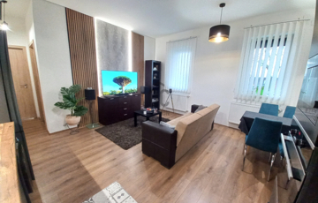 - emeleti lakórész cc 100nm mely :tágas nappali konyhával, 2 fürdőszoba-mosdó, 2 hálószoba, kamra-háztartási helyiség, és egy 3 nm-s erkély