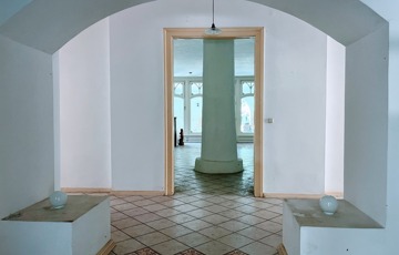 - 350 m2-es kereszt alaprajzú épület bemutatóteremmel, lakrésszel;