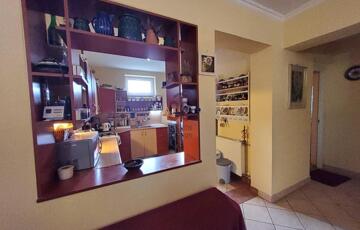 A kisebb lakrész 27,8m2, áll egy konyha-étkező-nappaliból, zuhanyzós fürdőszoba -WC-ből és egy hálószobából. Déli fekvése, világos, napos helységei vidámságot tükröznek.