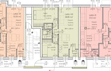 A lakások központi elhelyezkedésűek, közelben bank, posta, ABC,