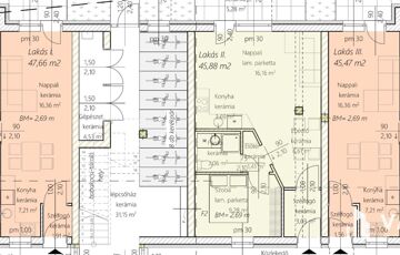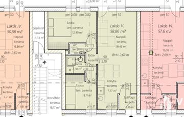 A lakások méretei, a legkisebb 45,47 m2, a legnagyobb 64,72 m2. 2026 januártól 5 % áremelés.