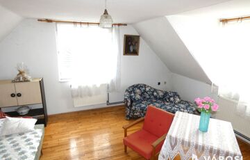 Az otthon 1 nappalival, 5 szobával és 2 fürdőszobával rendelkezik, így kényelmes életteret biztosít akár nagyobb család számára is. A két szint jól tagolt: minden szinten több szoba és egy fürdő található, a külön bejáratú helyiségek pedig megkönnyítik a családi mindennapokat (gyerekeknek, dolgozószobának, vendégszobának is ideális). A tetőtéri szobákból szép panoráma nyílik a városra és a Szent György-hegyre.