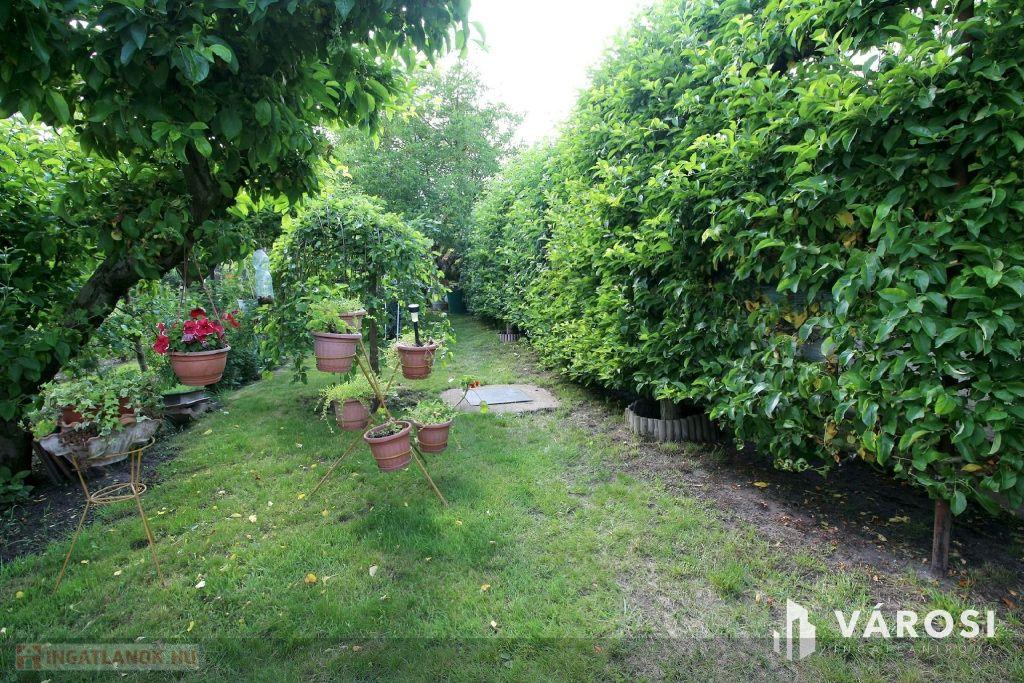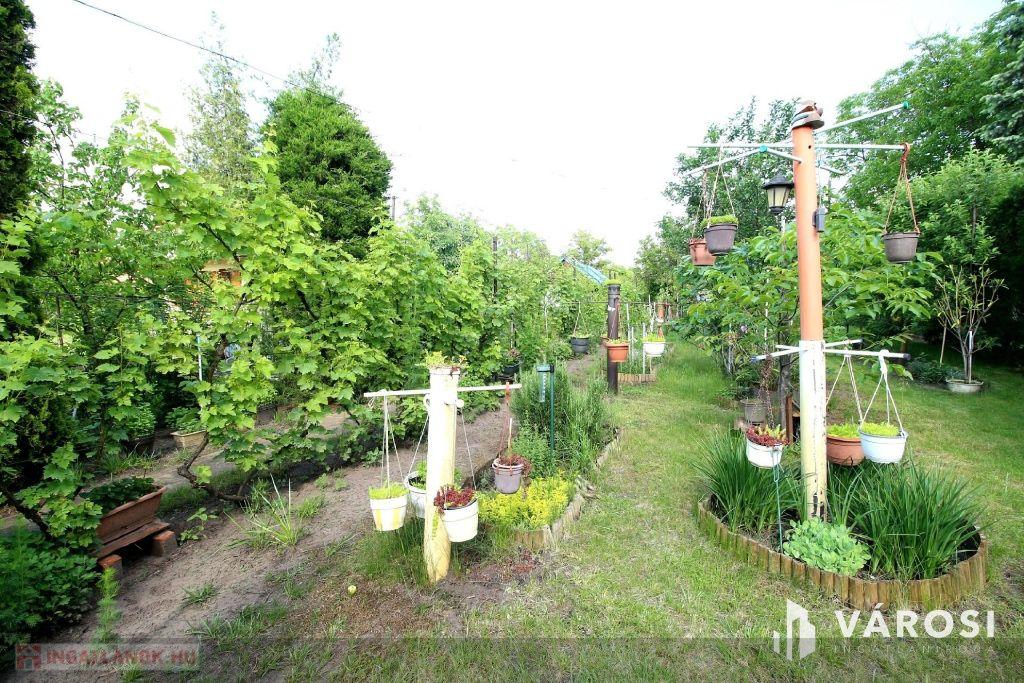 Eladó Szeged népszerű üdülő övezetében, Sziksóstón, egy 833 m2 területű művelés alól kivett zártkerti ingatlan, rajta nyári pihenésre alkalmas faházzal. Az ingatlan, tulajdonosok számára felbecsülhetetlen értékét a gyönyörűen gondozott kert adja, melyben a kordonon, sövénynek nevelt, bőtermő, nemes almafák mellett számtalan más gyümölcsfa, bokor, konyha-és virágoskert is megtalálható. Egy igazi madár csicsergős méhlegelő!