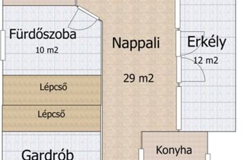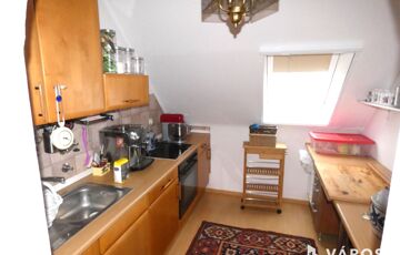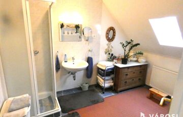 • Tetőtér: Tágas nappali, négy szoba, fürdőszoba, konyha, 12 m²-es erkély gyönyörű kilátással a Szent György-hegyre.