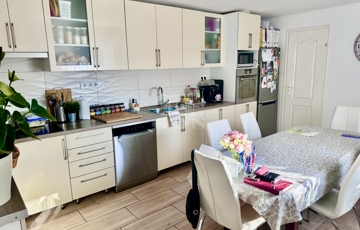 Az első lakrészbe belépve egy tágas, beépített konyhabútoros konyha étkezővel fogad minket! Innen nyílik egy wc ami háztartási helyiségként is funkciónál, itt található a mosógép, valamint egy korszerű bojler is. Ebből a helyiségből tudunk felmenni a felső szintre. Az emeletre felérve, egy kis nappaliba érkezünk, ahonnan nyílik egy tágas, káddal ellátott fürdőszoba, valamint 2 szoba és egy kis közlekedő. A kisebb szobából egy erkélyre is kiléphetünk.