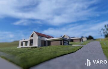 A telken szabadon elhelyezhető a ház. A képeken látható elhelyezés a látványterv része. A leendő tulajdonos elképzelései, tervei lesznek a meghatározók.