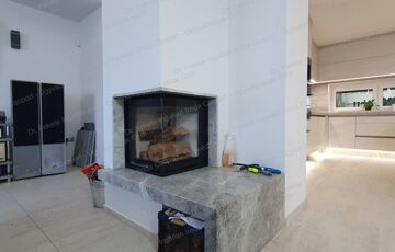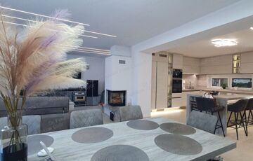 220 nm élettér: nappali + 3 szoba, 3 fürdő, 3 WC, háztartási helyiség, és egy hatalmas védett wellness és szabadidős tér. Fedett GK beállók + garázs.