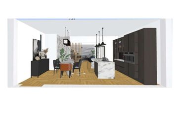 A földszinten konyha + étkező, lépcsőház valamint egy szoba, Wc és külön zuhanyzós fürdőszoba található. Felújítás során a teljes magasföldszint, tágas közös térré alakítható (inspirációként néhány tervet tartalmaz a képanyag).