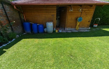 A házhoz tartozik egy nagyméretű, 18 m²-es garázs, amely kényelmes parkolást biztosít. A garázsból közvetlen lejárat vezet a pincébe, így ideális tárolásra és egyéb célokra is használható.