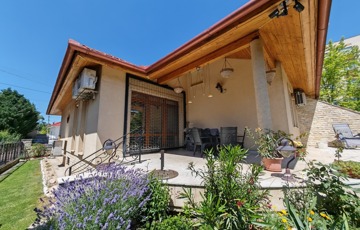 Csendes zsákutcában, 2011-ben épült, egyedi, mediterrán stílusú, 102 m²-es családi ház 400 m²-es parkosított telken eladó.