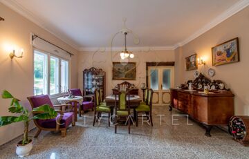 - felújított főépület 500 nm (Lakószint: konyha, ebédlő-társalgó, nappali-hall, kamra, office, lépcsőház, folyosó, powderroom, hálószoba, fürdőszoba káddal és zuhannyal, open concept lakosztály hálóval, fürdővel káddal és zuhannyal valamint bidés WC-vel és garderobe-bal, 2 terasz, Alagsor: garázs, csizmaszoba, folyosó, mosókonyha, mosdó – zuhany – bidés WC, appartament konyhával, hálófülkével, fürdőszoba káddal és WC-vel, amennyiben igény van rá, teljesen bútorozva)