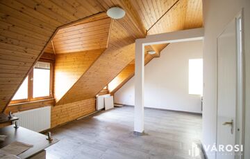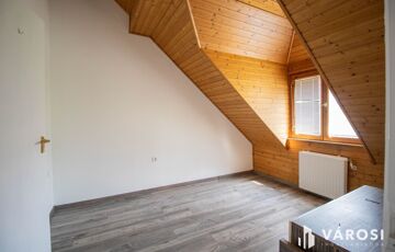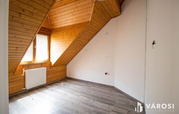 A közlekedőből nyíló 3 szoba, valamint a nappali-konyha laminált padlós, a tetőtéri ablakok fából vannak, a fűtése kombi gázkazánnal megoldott - radiátor hőleadókkal.