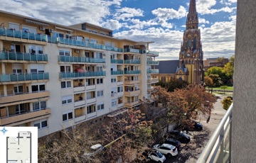 Modern, quiet 1.5 room flat (35.5 m2 + balcony) for rent at Béke Square.