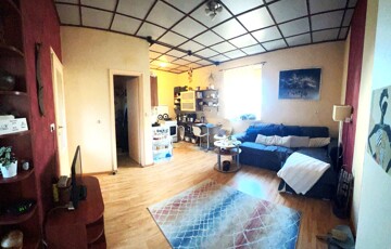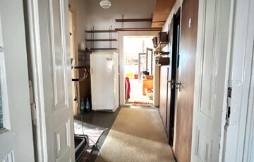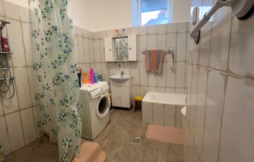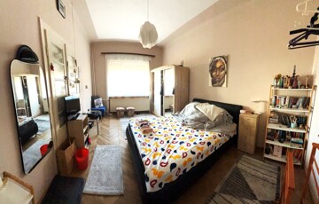 Az ingatlan jellemzői: A nagyobb, 150 m²-es lakrész tágas tereivel a múlt eleganciáját és a jövő lehetőségeit ötvözi. Belmagassága 3,2 méter, ami impozáns tágasságot ad a helyiségeknek. Itt található egy előszoba, két nagyobb és egy kisebb szoba, egy teljesen felújított fürdőszoba, különálló WC, közlekedő, spájz, valamint egy nagy nappali, amely egy harmonikaajtóval kapcsolódik a konyhához. Ez lehetővé teszi, hogy a nappalit és a konyhát egybenyithassuk, ha nagyobb térre van szükség. Bár felújításra szorul, jelenlegi állapotában is remek alapot nyújt egy modern, stílusos otthon kialakításához.
