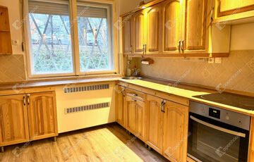 - a konyha, valamint a szobák közül 2 laminált padlóval, a fürdőszoba, a közlekedő és az egyik szoba járólappal burkolt