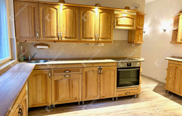 - méretre tervezett, sok pakolási lehetőséget nyújtó konyhabútor, beépített sütővel és tűzhellyel