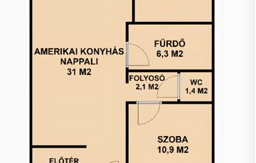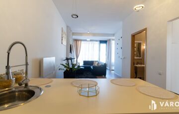 - 64 m2 nettó lakótér, amelynek a központi helysége a tágas 31m2-es amerikai konyhás nappali. Két hálószoba biztosítja a kényelmet, ezen felül helyet kapott egy fürdőszoba wc-vel, valamint egy különálló mellékhelyiség a maximális komfort érdekében.