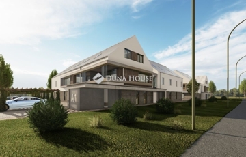 Kozármisleny folyamatosan fejlődő új részén 8 lakásból álló épületben modern, új építésű lakások eladók!Első emeleti belső kétszintes lakás nappali-konyha -étkező, 2 szobás teraszos lakás, saját autó beállóval eladó!4. Lakás első emeleti 77/96m2 helyiség lista:- Nappali- Konyha- Étkező- Terasz 10,27m2- Külön WC helyiség-Tároló helyiségTetőtér:- 2 db szoba- FürdőszobaA lakópark modern, energiahatékony rendszerekkel épül, tökéletes harmóniát képez a természettel.A lakások kényelmes, modern, funkcionális elrendezéssel, szép panorámával, magas, prémium minőségű anyagok felhasználásával csábítják új lakóikat.Minden lakáshoz díjmentes parkolóhely tartozik, a földszinti lakások saját kerttel, az emeleti lakások terasszal rendelkeznek.Az L alakú épület egy védett közösségi teret ölel körül, ahol egy közös park kerül kialakításra. Ez a védett közösségi tér az igények szerint alakítható. Lehet találkozási pont, akár medence és játszótér is megvalósítható erre a területre.A környezet kisgyermekes családok részére is biztonságos, sebességkorlátozott övezet, a közelben új óvoda, kiváló iskola is várja a gyerekeket.Műszaki tartalom:- 30cm X-Therm vázkerámia falazó-blok, 12cm grafitos hőszigetelés- 30cm födém szigetelés- Hőszigetelt műanyag nyílászárók- Földszinti gépházban kialakított hőszivattyús padlófűtésrendszer és lakásonként fan-coil gyors felfűtésre és hűtésre alkalmas rendszer, HMV körben kialakított használati melegvíz cirkulációs rendszer- Konyhákban, fürdőszobákban, Wc-ben kialakított szellőztetőrendszer közvetlenül a szabadba vezetveAz épületben még több lakás elérhető, érdeklődjön a lakások után!