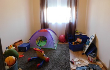 A másik külön bejárattal rendelkező lakrész 41m2, ahol 2 szoba, zuhanyzós fürdőszoba wc-vel és közlekedő található, ami jelenleg irodaként és tornateremként funkcionál.