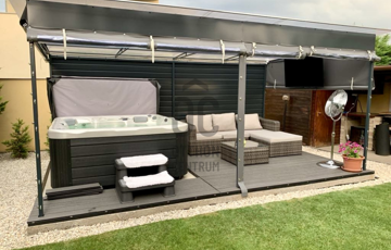 téliesített wellness terasz 5 személyes Wellis jakuzzival
