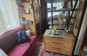 Néhány bútor az ár részét képzni: étkező bútorok a szekrényekkel, komóddal, kiszasztallal és fali előszoba fallal, valamint a földszinten lévő szekrénysor. A fenti szobában lévő francia ágy + komód és polcok szkerények + éjjeli szekrény.