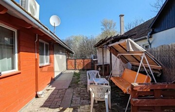 A ház mögött tágas terasz található, amelyről egy nyárikonyha nyílik, külön WC-vel és tusolóval – ideális nyári főzésekhez, baráti összejövetelekhez.