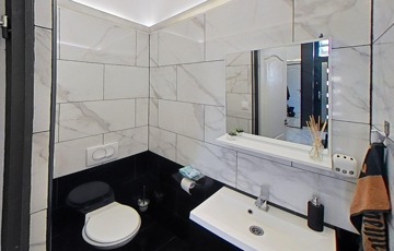 A ház alagsorában kapott helyet a finn szauna és egy további vizesblokk is.