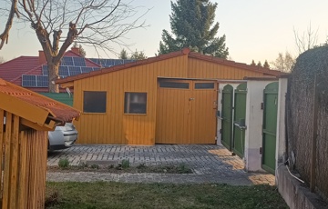 Kilépve a kertbe 40 négyzetméteres terasz a hárs árnyékában, kosárlabdapálya a másik oldalon. A kertet kútról automata rendszer öntözheti, plusz két víz konnektor került kiépítésre a kerti csap mellett.