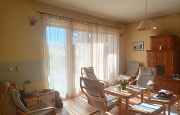 A ház alapterülete 185 m2 , amely 4 Különálló szoba, 2 fürdő, wc-vel, 1 vendég wc. a ház szívében világos nappali cserépkályhával, abból nyíló étkező, konyha, kamra található. A házban még dupla garázs, szerszámos, a kertben faház került kialakításra.
