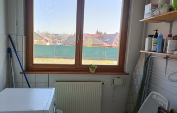 A felszereltség tartalmaz központi porszívót, beépített konyhát és szekrényeket, riasztó rendszert, automata garázs és kerti kaput is. Akadálymentesítés könnyen megoldható az egy szintes adottságból adódóan.